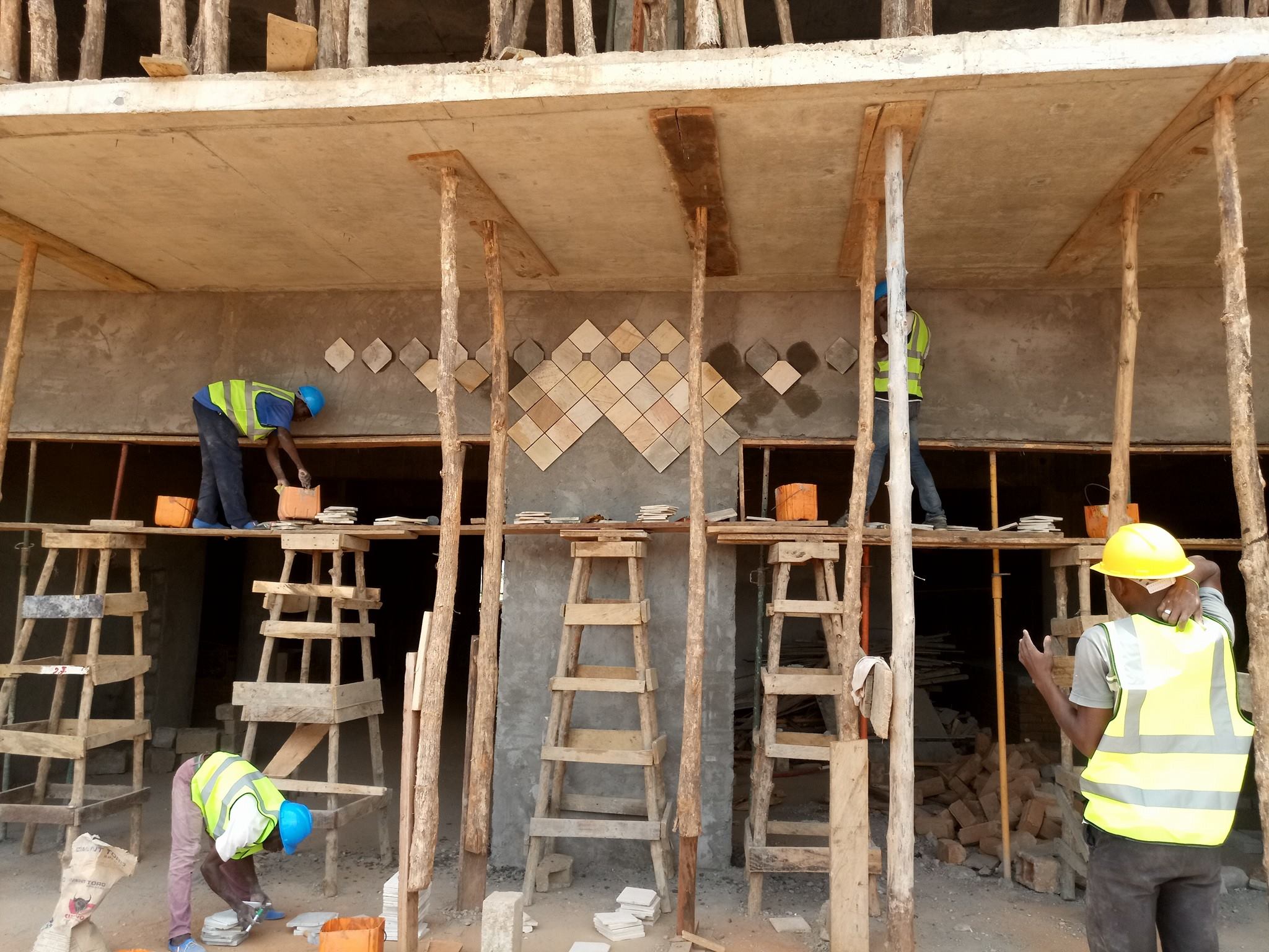L’Ecole-Entreprise Sociale et Solidaire RePiNaTo (Revalorisation des Pierres Naturelles du Togo) taille la pierre locale pour la transformer en pierre d’ornement (sol ou murs)