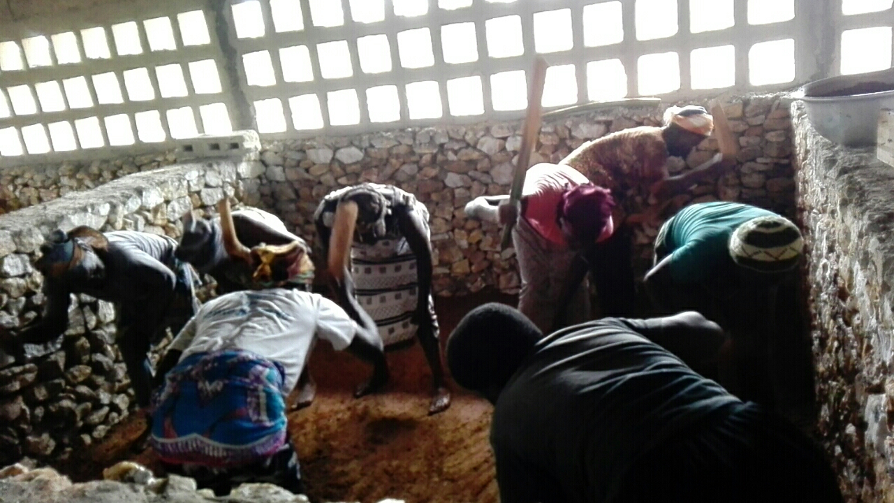 Ci dessous, les femmes du village en train de finir le sol en terre battue de la première bergerie… En chantant!!!